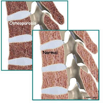 Maintaining good posture is of utmost importance if you have osteoporosis. A curved upper spine posture, called kyphosis, is common in osteoporosis due to the wedge-like fracturing of the thoracic spine (middle portion of your spine) that often occurs. This type of injury develops when the front part of the vertebrae (spinal bones) collapse leaving the posterior portion (back of the vertebrae) in a higher position, creating a wedge-like appearance. These types of fractures cause the loss of height.